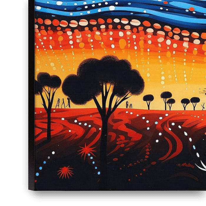 Diese fesselnde Serie australischer Aborigine-Kunst ist eine tiefgründige Hommage an die reiche kulturelle Vielfalt und die alten Erzähltraditionen der indigenen Gemeinschaften. Mit der ikonischen Technik der Punktmalerei wird in jedem Werk eine komplexe Erzählung verwoben, die der Traumzeit Tribut zollt - dem mythischen Reich, in dem…