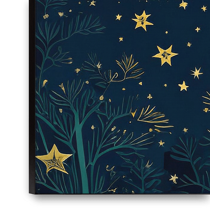 Bestelle dieses Landschafts-Wandbild Sternennacht-Wald von Vythryd Arts als Reproduktion auf Leinwand, Alu-Dibond, als Poster, Fototapete oder Acrylglasbild.