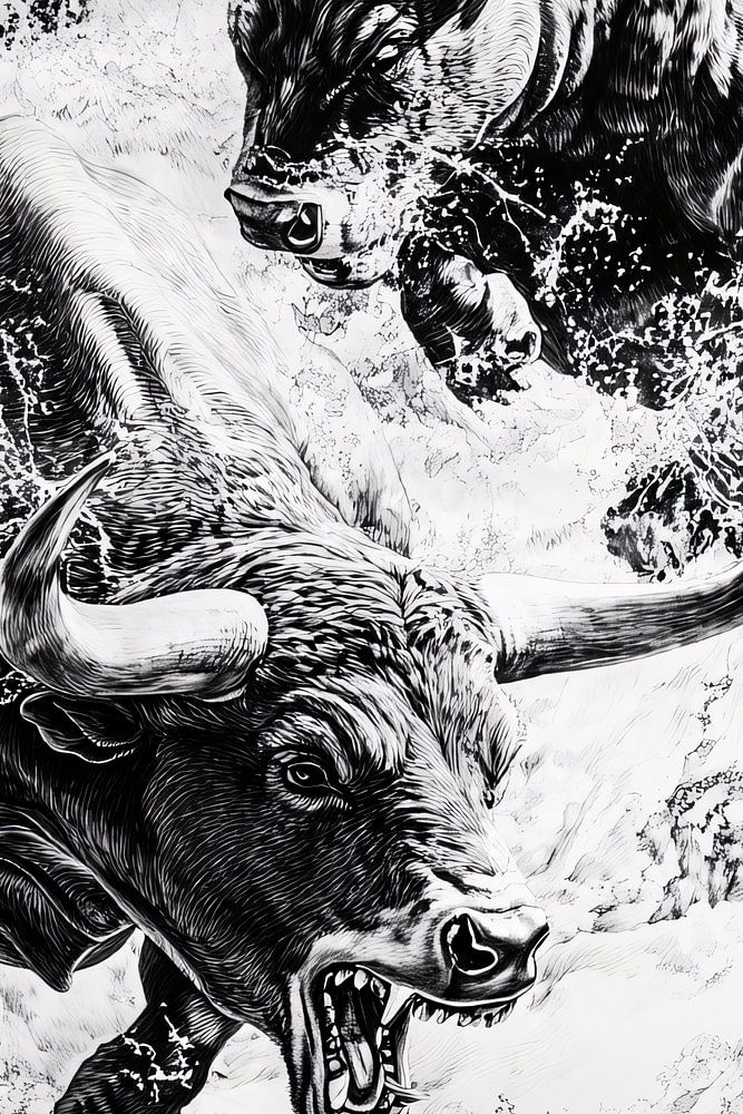 Dieses beeindruckende Design fängt die Kraft und Dynamik von Stieren ein, die durch glitzerndes Wasser stürmen, mit einer städtischen Skyline im Hintergrund. Die monochrome Farbpalette sorgt für einen kraftvollen Look, der die Aufmerksamkeit auf sich zieht. Dieses Kunstwerk eignet sich perfekt für moderne Innenräume und verleiht jedem Raum eine energiegeladene und kühne Stimmung. Die Details in den Stieren und den Wasserspritzern machen das Design lebendig und beeindruckend. Ideal für Liebhaber von kraftvollem Design und urbanen Themen.