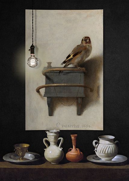Über „Still Life with Pots and Goldfinch“ von Marja van den Hurk