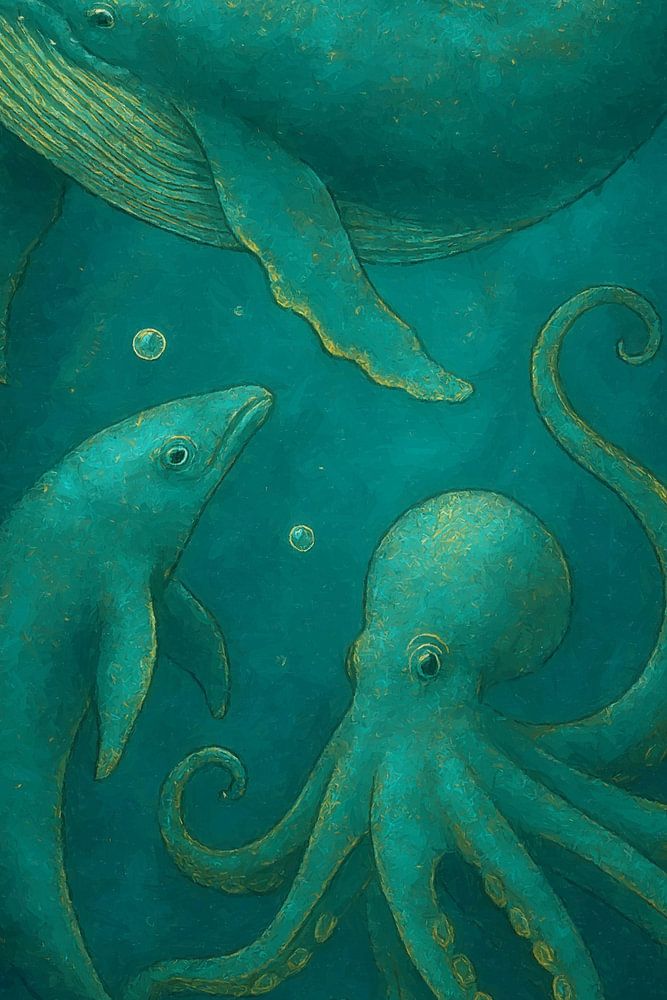 Tauche ein in die magische Welt der Tiefsee mit „Stille Giganten“ – einem faszinierenden Wandbild, das Wal, Delfin und Oktopus in einer träumerischen Komposition vereint. Die sanften Lichtstrahlen, die durch das Wasser dringen, verleihen der Szene eine mystische Ruhe, während die Meerestiere in harmonischer Balance schweben. Dieses Kunstwerk bringt die stille Kraft und Schönheit des Ozeans in dein Zuhause – ideal für Räume, die Sehnsucht, Tiefe und Gelassenheit ausstrahlen sollen.