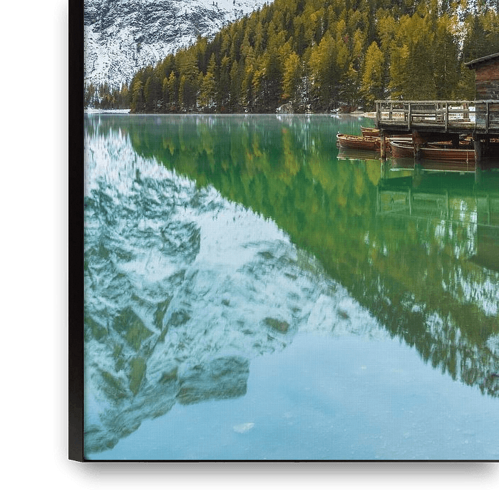 Bestelle dieses Landschafts-Wandbild Stille am Pragser Wildsee von Daniela Beyer als Reproduktion auf Leinwand, Alu-Dibond, als Poster, Fototapete oder Acrylglasbild.
