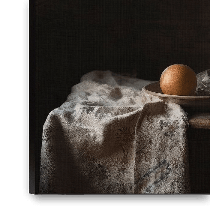 Stillleben mit dem Titel "Wabi-sabi". Dieses von den Werken der alten Meister inspirierte Stilleben hat eine heitere Ausstrahlung und eine besonders ruhige Farbpalette, die sofort ein "Zen"-Gefühl hervorruft. Das Licht spielt in diesem Werk eine Hauptrolle.