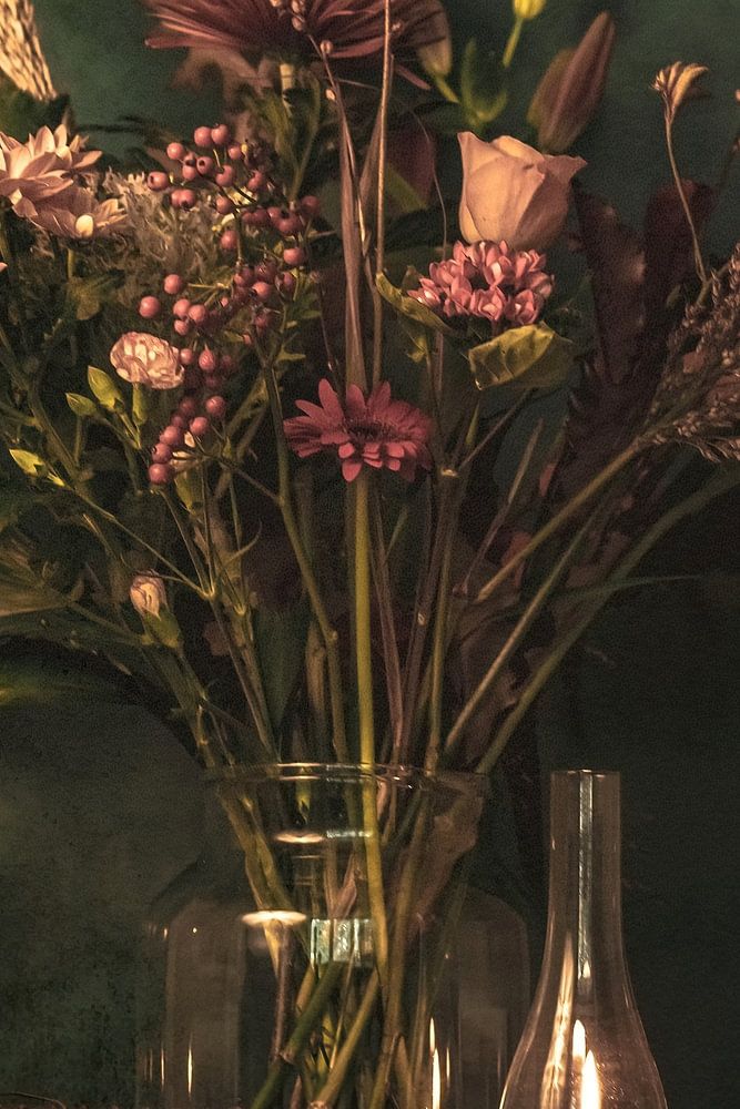 Ein Stillleben im Sinne der Meister des Goldenen Zeitalters. Ein besonderer Lichteinfall, damit die Blumen an ihrem richtigen Platz stehen. Ein Gemälde, das in einem schicken Hotel oder einem nüchternen Landhaus nicht fehl am Platz wäre.