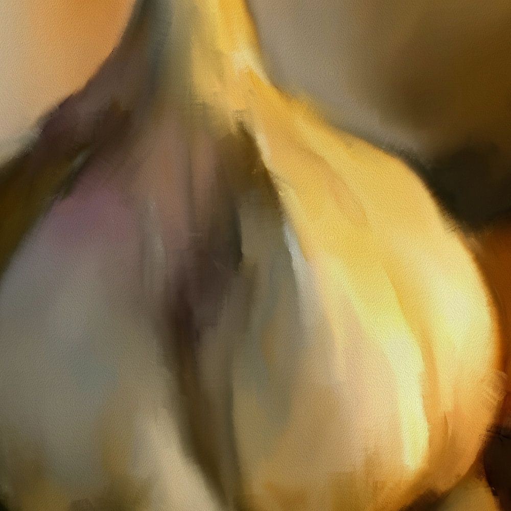 Stillleben mit Knoblauch | Herbstliches Beige In diesem stillen Gemälde spielt Knoblauch die Hauptrolle. Eine köstliche Nahaufnahme, perfekt für die Küche. Um Sie zu inspirieren, die köstlichsten Gerichte selbst zuzubereiten. Und für eine gute Küche ist Knoblauch für mich ein unverzichtbares Gewürz. Vor allem in der französischen, mediterranen und mitteleuropäischen Küche. Außerdem ist Knoblauch auch unglaublich gesund, denn ihm wird nachgesagt, dass er den Cholesterinspiegel und den Blutdruck senkt. Aber vor allem ist das Gewürz einfach ein großartiges Würzmittel. Der in der Küche unverzichtbare Knoblauch wird in einem Stillleben mit vielen herbstlichen Beigetönen gezeigt. Beige, Braun, warmes Gelb, Aubergine, Weiß, Grau und ein Hauch von Grün. Das Ganze ist sanft, minimalistisch, gedämpft, natürlich und herbstlich. Man kann schon das Knistern des Kaminfeuers hören. Klicken Sie unbedingt auf das Bild, um die Details dieses Gemäldes zu sehen. Sie können diesen Knoblauch mit meinem anderen Knoblauchbild oder mit einem der anderen Bilder aus meiner Kitchen Collection kombinieren.