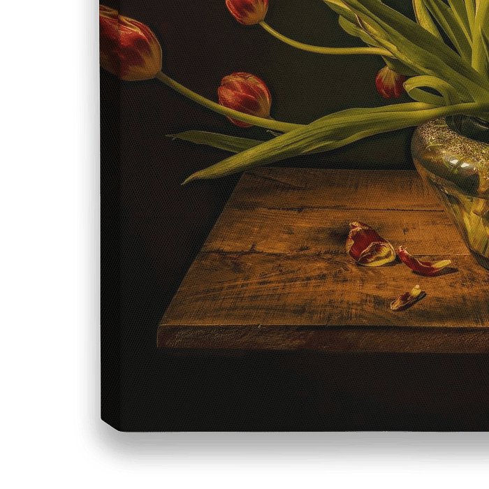 Stillleben mit abgestorbenen Tulpen nach den alten Meistern.