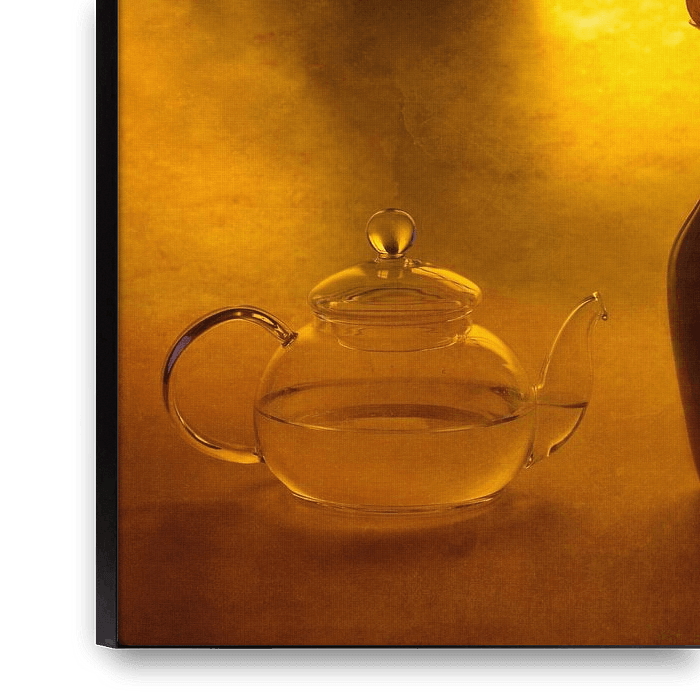 Bestelle dieses Stilleben Stilleben mit einer Teekanne und einer Vase auf einem Fensterhintergrund von Brig Barkow als Reproduktion auf Leinwand, Alu-Dibond, als Poster, Fototapete oder Acrylglasbild.