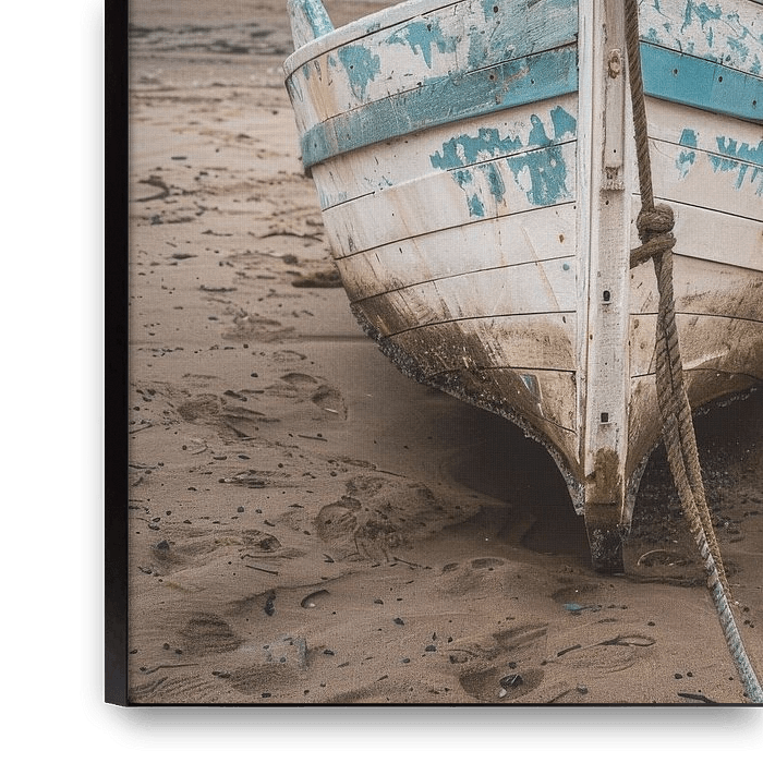Bestelle das Foto Stillgelegtes Boot am Strand von Poster Art Shop als Reproduktion auf Leinwand, Alu-Dibond, als Poster, Fototapete oder Acrylglasbild.
