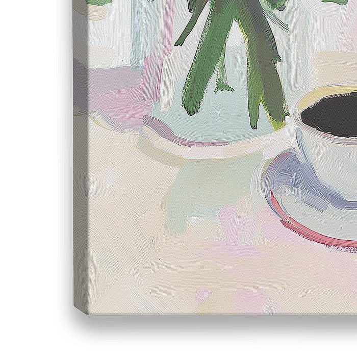 Bestelle dieses Blumen-Wandbild Stillleben Kaffee Blumen Fauvismus Moderne Naive Kunst von Niklas Maximilian als Reproduktion auf Leinwand, Alu-Dibond, als Poster, Fototapete oder Acrylglasbild.