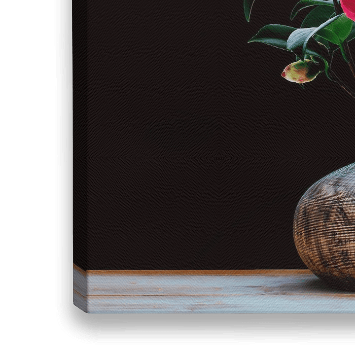 Große rote Blüten der Kamelie in einer Vase.