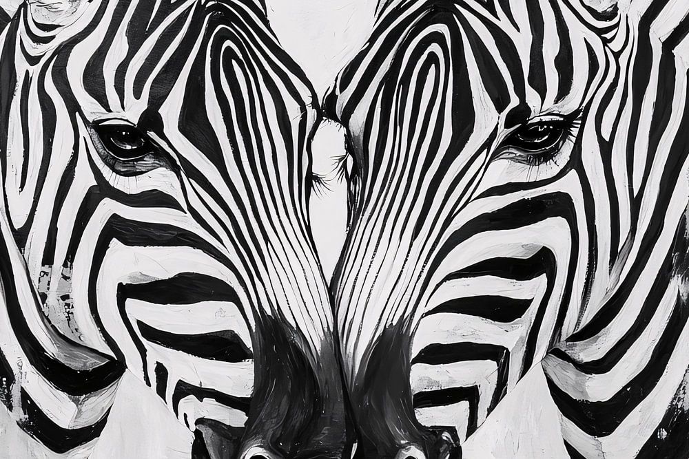 Dieses wunderschöne schwarz-weiße Kunstwerk verleiht jedem Raum einen einzigartigen und stilvollen Look. Das detaillierte Bild zweier Zebras, die sich gegenüberstehen, unterstreicht die Schönheit von Kontrast und Symmetrie. Perfekt für ein modernes Interieur oder als markantes Element in einem minimalistischen Raum. Das Design verbindet Eleganz mit natürlicher Inspiration und ist somit ideal für Kunst- und Tierliebhaber. Hängen Sie es im Wohnzimmer, Büro oder Schlafzimmer auf, um ein zeitloses Gefühl von Raffinesse zu erzeugen.