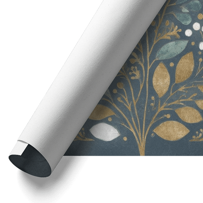 Dieses Kunstwerk zeigt eine anspruchsvolle und elegante Interpretation des Weihnachtsbaums. Der Baum besteht aus anmutigen Zweigen, Blättern und Beeren, die in einer harmonischen Farbpalette aus Gold, Blau und Weiß ausgeführt sind. Die feinen Linien und der subtile Glanz verleihen dem Baum ein luxuriöses und zeitloses Aussehen. Vor dem dunklen Hintergrund hebt sich die Form schön ab und verleiht den Farben Tiefe. Das Design strahlt Ruhe und Stil aus und vermittelt ein Gefühl von Wärme und Festlichkeit, ohne verschwenderisch zu sein. Diese moderne und botanische Übersetzung des Weihnachtsbaums verbindet Tradition mit zeitgenössischer Ästhetik. Das Stück strahlt Klasse und Raffinesse aus und passt perfekt in ein Interieur, in dem sich Kunst und Dekoration gegenseitig verstärken. Ein subtiler und doch festlicher Blickfang, der die Magie der Weihnacht auf unaufdringliche und stilvolle Weise zum Ausdruck bringt.