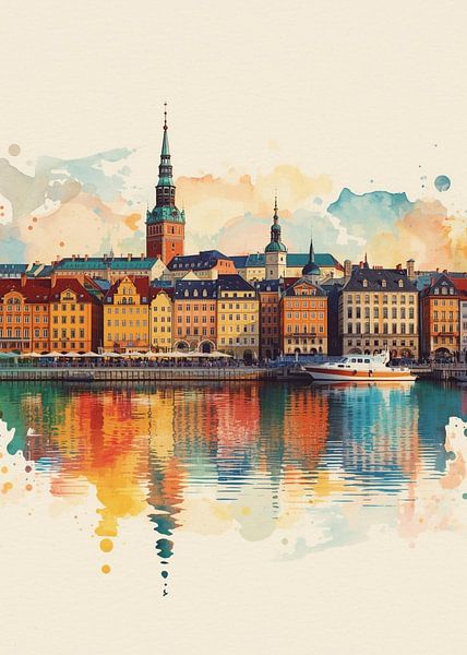 Bestelle dieses abstrakte Wandbild Stockholmer Skyline von Muhammad Ardian als Reproduktion auf Leinwand, Alu-Dibond, als Poster, Fototapete oder Acrylglasbild.