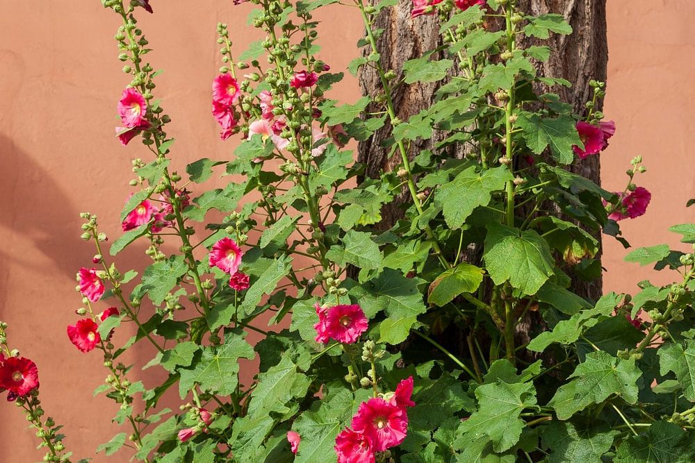 Alter Brunnen und stockmalven am kito, Vegesack, Bremen, Deutschland, Europa