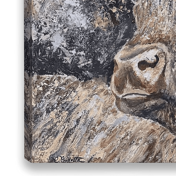 Was für ein schönes Tier dieser schottische Highlander ist. Um den Charakter des Highlanders so gut wie möglich zu imitieren, hat sich der Künstler für die Arbeit mit Malmessern entschieden. Das Ergebnis ist erstaunlich. Die grobe Malerei mit Brio Graben Arbeit, die jedes Interieur passen sollte verbessert.
