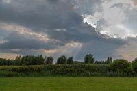 Die Sonne schickt ihre Strahlen durch die Wolkendecke ins Vorland an der Nordseekueste