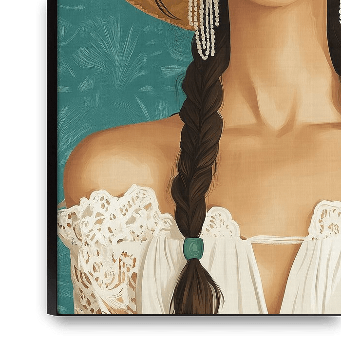 "Strahlend in Weiß und Gold" beschreibt eine Frau, die eine Aura von purer Eleganz und Raffinesse ausstrahlt. Sie trägt ein zierliches weißes Kleid, das schlicht und doch auffallend ist, und kombiniert es mit großen weißen Ohrringen, die ihren Look vervollständigen. Auf dem Kopf trägt sie einen großen, gelb-goldenen Hut, der…