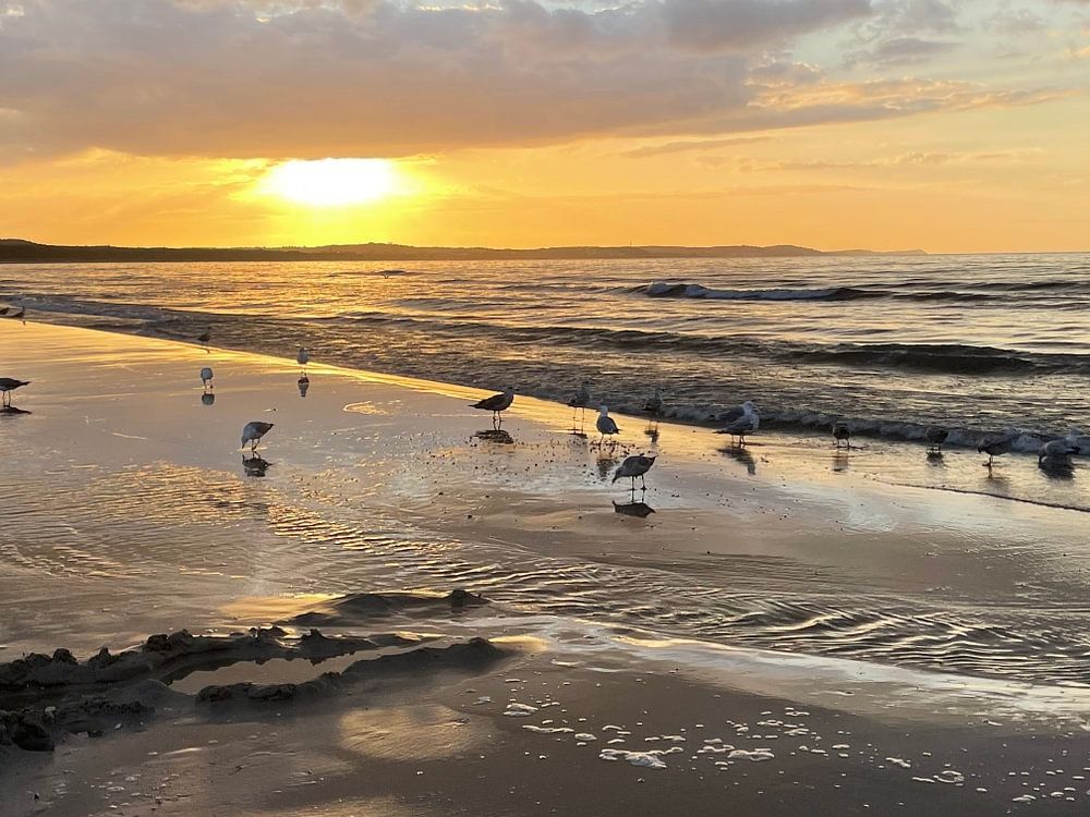 Sonnenuntergang an der Ostsee (Mielno in Polen). August 2023. Ein besonderes Stimmungsfoto dank eines unverwechselbaren Lichts.