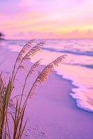 Sanfte Pastellfarben verschmelzen am Horizont mit den Wellen, während zarte Gräser sanft im Wind wiegen. Dieser Szene verleiht eine entspannende Atmosphäre, die perfekt für ein Schlafzimmer geeignet ist. Hier kann man die Sorgen des Alltags hinter sich lassen und in eine friedliche Traumwelt eintauchen.