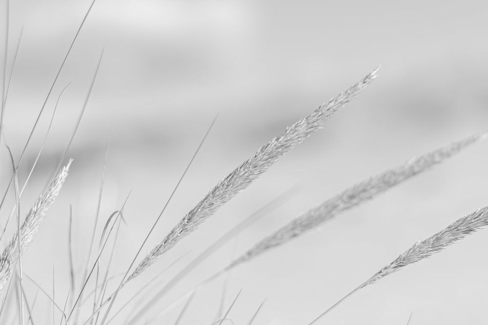 Nahaufnahme von Strandhafer in den Dünen von Nordholland. Durch die Fahnen des Strandhafens kann man die Dünen und eine Wolke sehen. Dieses Bild bringt die Ruhe und Oase in das Schlafzimmer oder Wohnzimmer.
