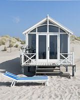 Diese dreiteilige Fotoserie zeigt Strandhäuser am Strand an einem sonnigen Tag mit Strandkörben. Strandhaus am Strand an einem sonnigen Tag mit Strandkorb.