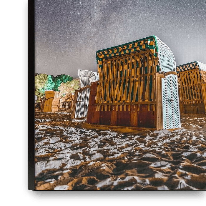 Bestelle das Foto Strandkorb Meets Milkyway von Fabian Elsing als Reproduktion auf Leinwand, Alu-Dibond, als Poster, Fototapete oder Acrylglasbild.