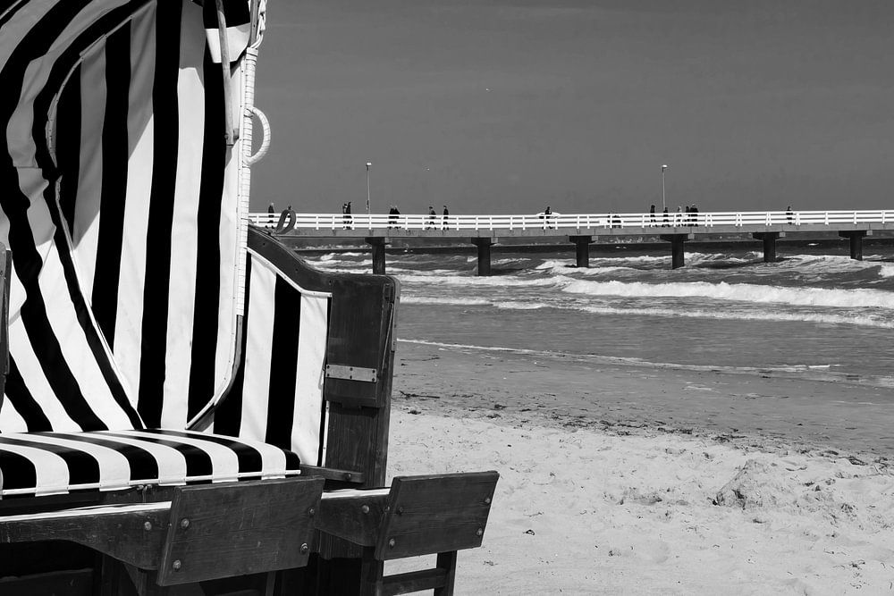 Strandkorb im Sonnenuntergang (Schwarzweiss) - Timmendorfer Strand/ Lübecker Bucht