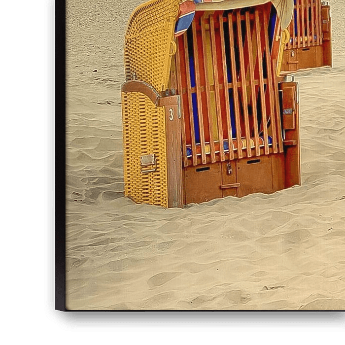 Strandstoelen. Egmond aan zee. Zand zee en acht strandstoelen. strand.Geel. https://nl.wikipedia.org/wiki/Egmond_aan_Zee