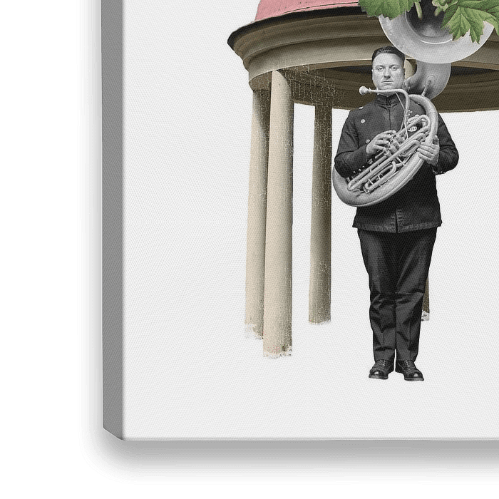 Ein ungewöhnliches und sehr unwahrscheinliches Porträt eines Mannes mit einer Tuba (Sousaphon).