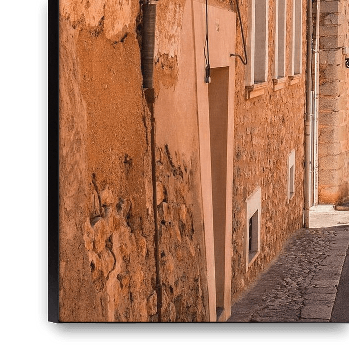 Bestelle das Foto Straße in dem mediterranen Dorf Biniaraix auf der Insel Mallorca, Spanien von Alex Winter als Reproduktion auf Leinwand, Alu-Dibond, als Poster, Fototapete oder Acrylglasbild.