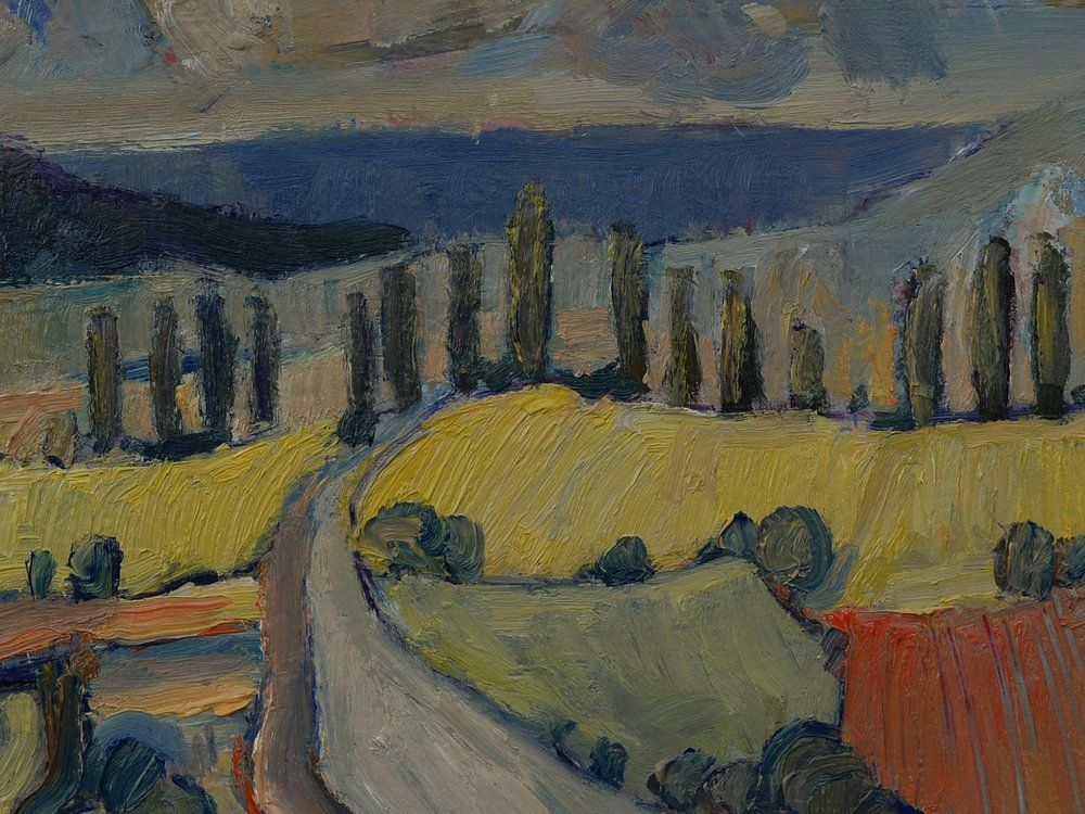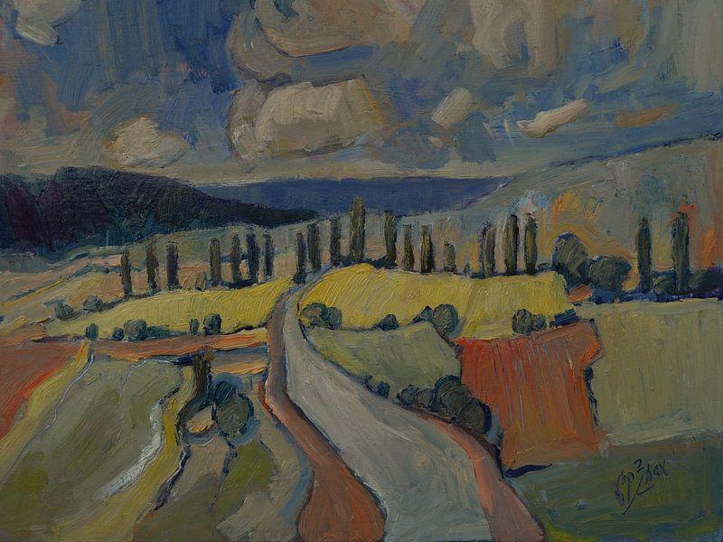 Bestelle diese Malerei Straße nach Eys von Nop Briex als Reproduktion auf Leinwand, Alu-Dibond, als Poster, Fototapete oder Acrylglasbild.