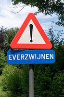 Leuven Belgien Straßenschild, das vor Wildschweinen auf einer der Zufahrtsstraßen nach Leuven warnt. Wildschwein, Sus scrofa, Wildtiere, Tier, einheimisch, Wildschwein, Straßenschild, Ausrufezeichen, Ausrufezeichen,