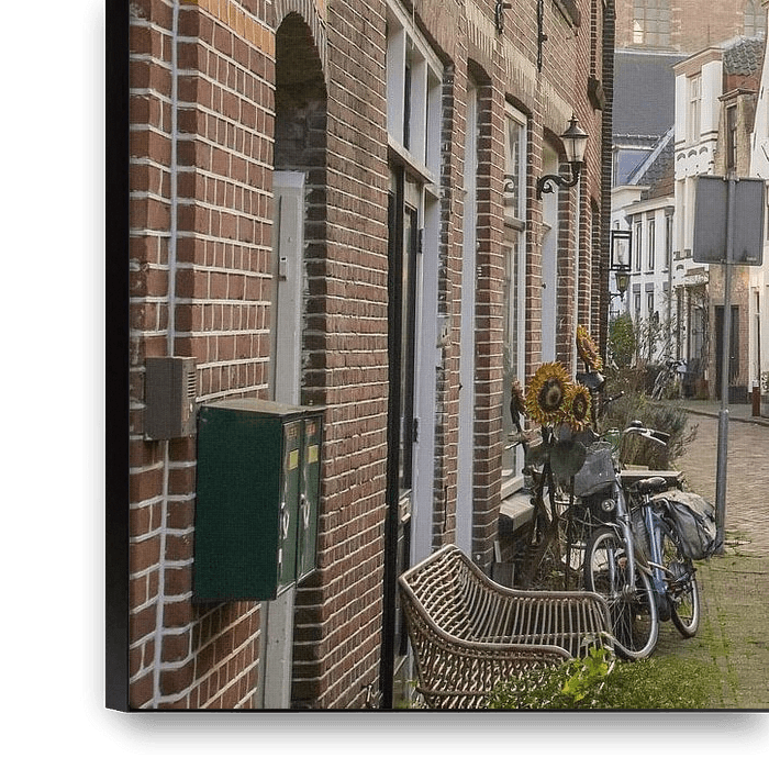 Bestelle das Foto Straßenszene in Weesp von Dirk van Egmond als Reproduktion auf Leinwand, Alu-Dibond, als Poster, Fototapete oder Acrylglasbild.
