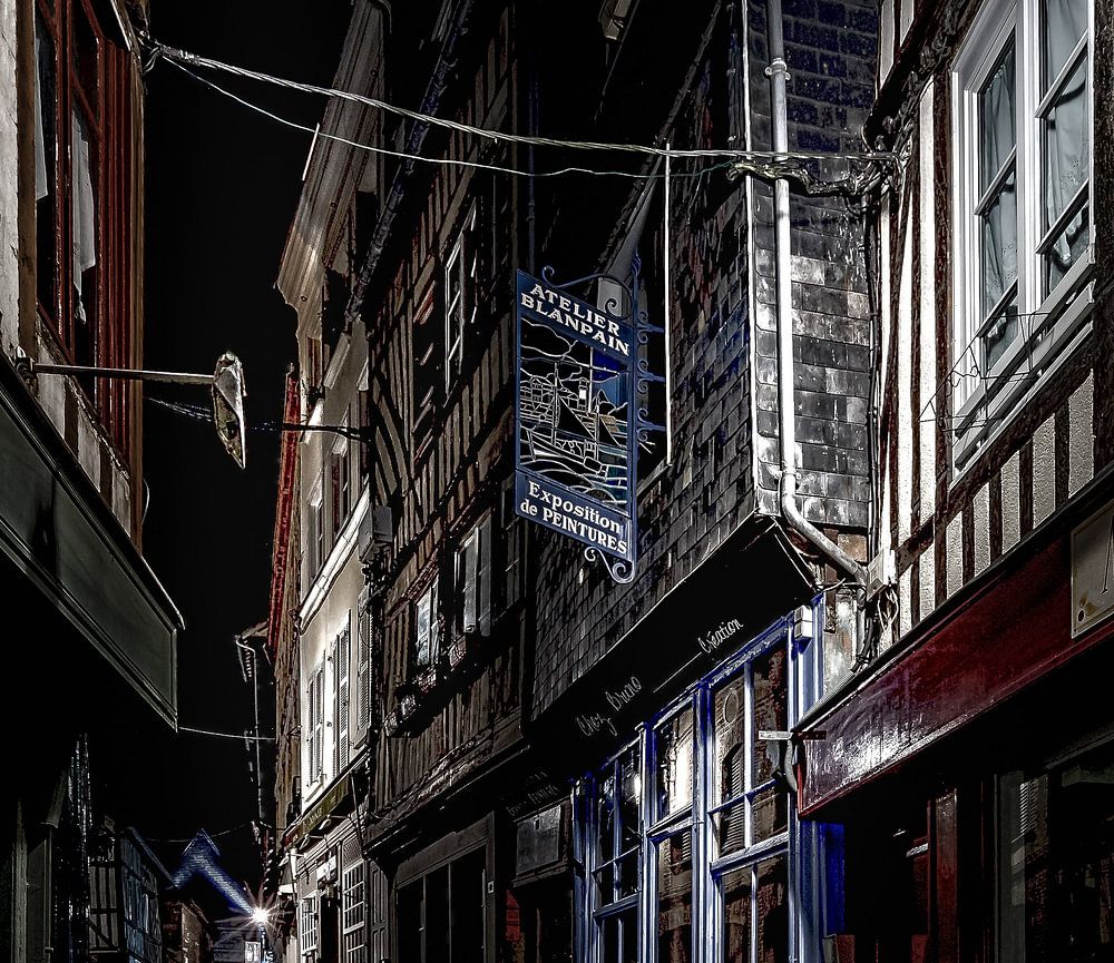 Honfleur in Normandie bij nacht.