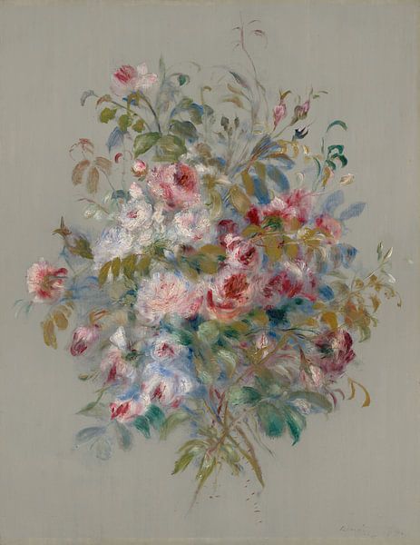 Bestelle „Strauß Rosen“, Pierre-Auguste Renoir als Reproduktion auf Leinwand, Alu-Dibond, als Poster, Fototapete oder Acrylglasbild.