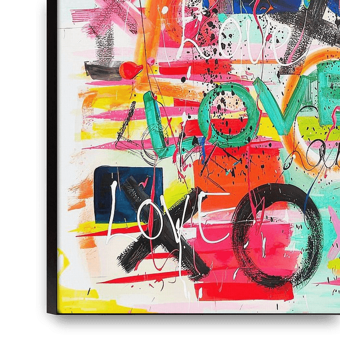 Ihre gewählte Kunst auf Leinwand, gespannt in einem Aluminiumrahmen. Schnell und einfach austauschbar für eine frische Ausstrahlung und ganz nach Ihren Wünschen.