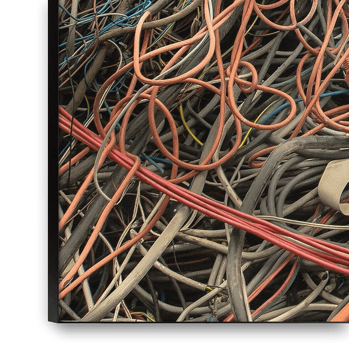 Bestelle dieses abstrakte Wandbild Stromkabel von Olivier Photography als Reproduktion auf Leinwand, Alu-Dibond, als Poster, Fototapete oder Acrylglasbild.
