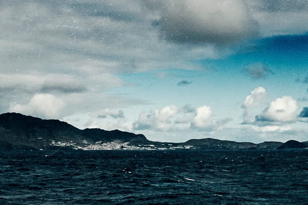Küste der Insel Madeira (Portugal) von einer Fähre aus aufgenommen an einem stürmischen Tag.