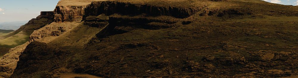 Ein Panoramafoto von einer Berglandschaft in Südafrika.