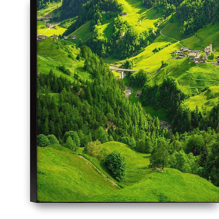 Ihre gewählte Kunst auf Leinwand, gespannt in einem Aluminiumrahmen. Schnell und einfach austauschbar für eine frische Ausstrahlung und ganz nach Ihren Wünschen.