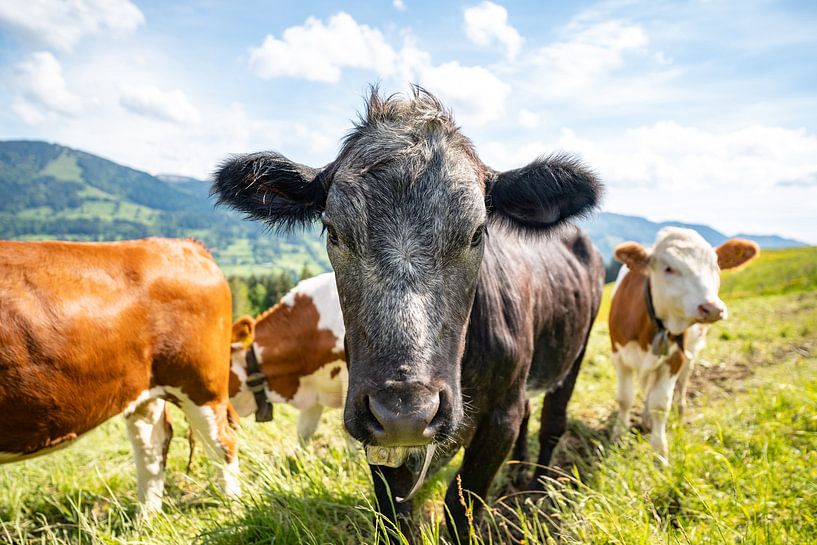 Bestelle das Foto Süße Allgäuer Kuh von Leo Schindzielorz als Reproduktion auf Leinwand, Alu-Dibond, als Poster, Fototapete oder Acrylglasbild.