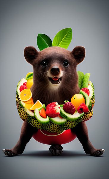 Bestelle dieses moderne Wandbild Süßer Wolpertinger (Obst) von Knoetske als Reproduktion auf Leinwand, Alu-Dibond, als Poster, Fototapete oder Acrylglasbild.