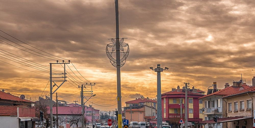 Eine Übersichtsaufnahme des Eingangs zu Suhut, einer typisch türkischen Stadt