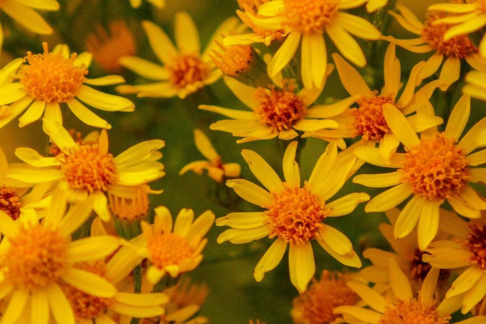 Die Pflanze blüht von Juni bis August mit gelben, 3-4 cm großen Blüten, die zu 10-30 in einer doldenartigen Rispe stehen. Der Kopf hat 10-20 Bandblüten. Die gewundenen Blätter sind kahl oder filzig.