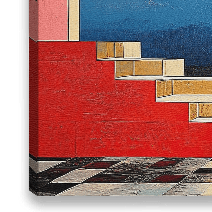 Bestelle dieses abstrakte Wandbild Surrealismus Innenarchitektur Architektur Design Geometrie von Niklas Maximilian als Reproduktion auf Leinwand, Alu-Dibond, als Poster, Fototapete oder Acrylglasbild.