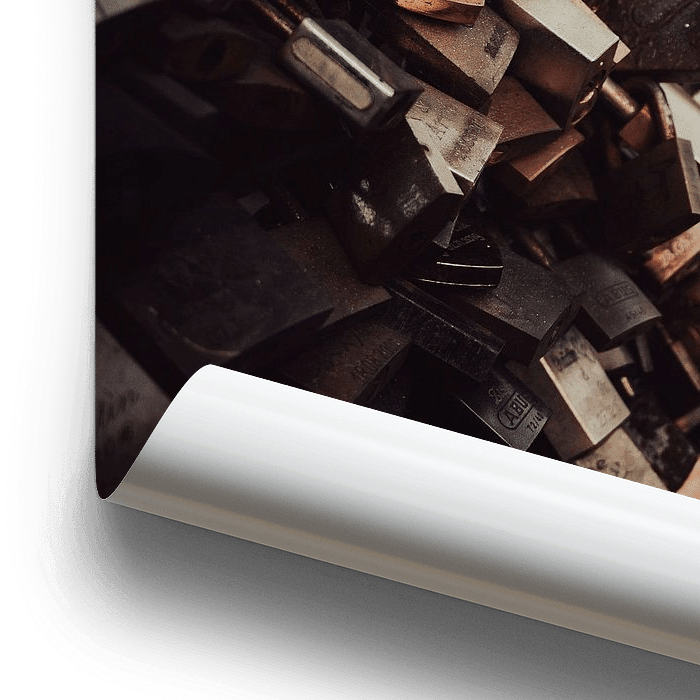 Eine Fotografie einer Wand aus Schlössern, jedes einzelne eine Geschichte von Liebe und Verbindung. Die Bilder sind mit Farben gesättigt, fast zwischen Schwarz und Weiß und leuchtenden Farbtönen, die die vielen Gräben zu einer dichten, emotionalen Masse verschmelzen lassen. Der Zaun selbst tritt durch die Kraft der Symbole, die er…