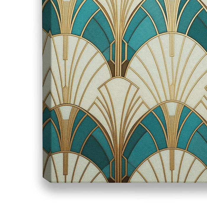 Ein klassisches Motiv in Türkis, Weiß und Gold. Dieses Stück ist von den Formen und der Farbpalette der Art-Déco-Bewegung der 1920er Jahre inspiriert. Das Stück verleiht Ihrem Interieur einen eleganten und klassischen Look!