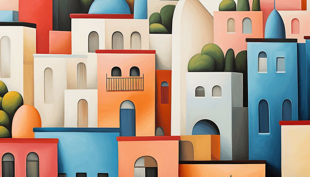 Dieses Gemälde ist Teil einer Serie mit dem Titel "Ein Wandteppich aus Tradition und Moderne", die die Schönheit und den Charme von Stadtstraßen erforscht, die das Alte und das Neue, das Kulturelle und das Natürliche miteinander verbinden.