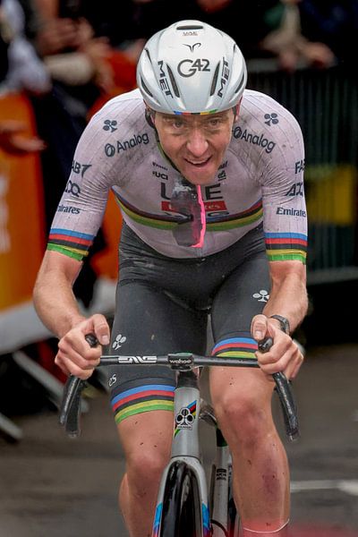 Bestelle das Foto Tadej Pogacar im Regen von FreddyFinn als Reproduktion auf Leinwand, Alu-Dibond, als Poster, Fototapete oder Acrylglasbild.