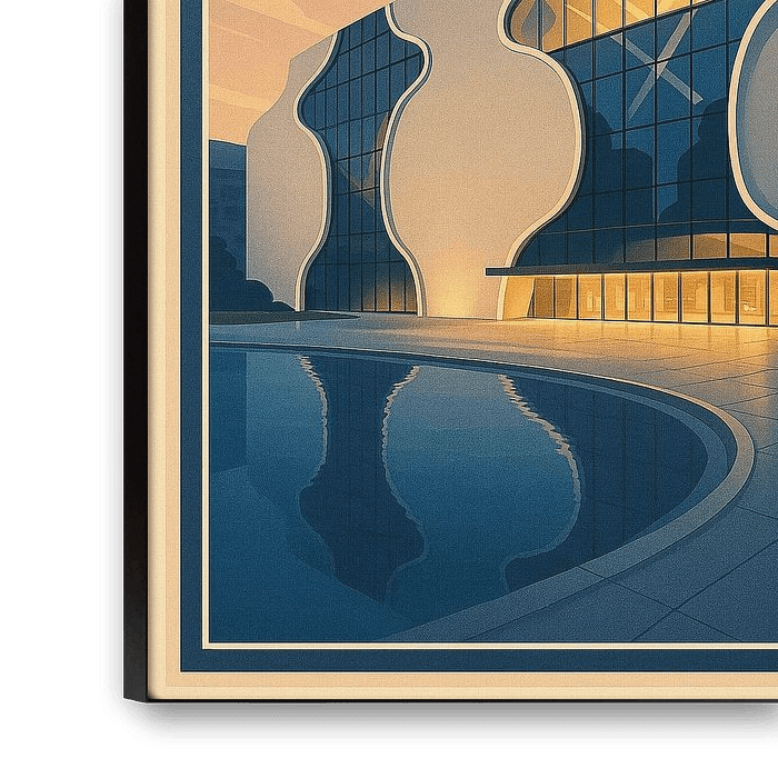 Bestelle dieses Landschafts-Wandbild Taichung Vintage Poster - National Taichung Theater Architektur Kunst von Travel Shop als Reproduktion auf Leinwand, Alu-Dibond, als Poster, Fototapete oder Acrylglasbild.